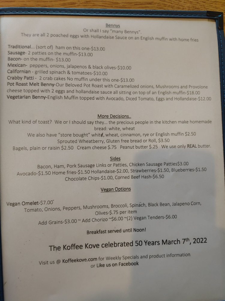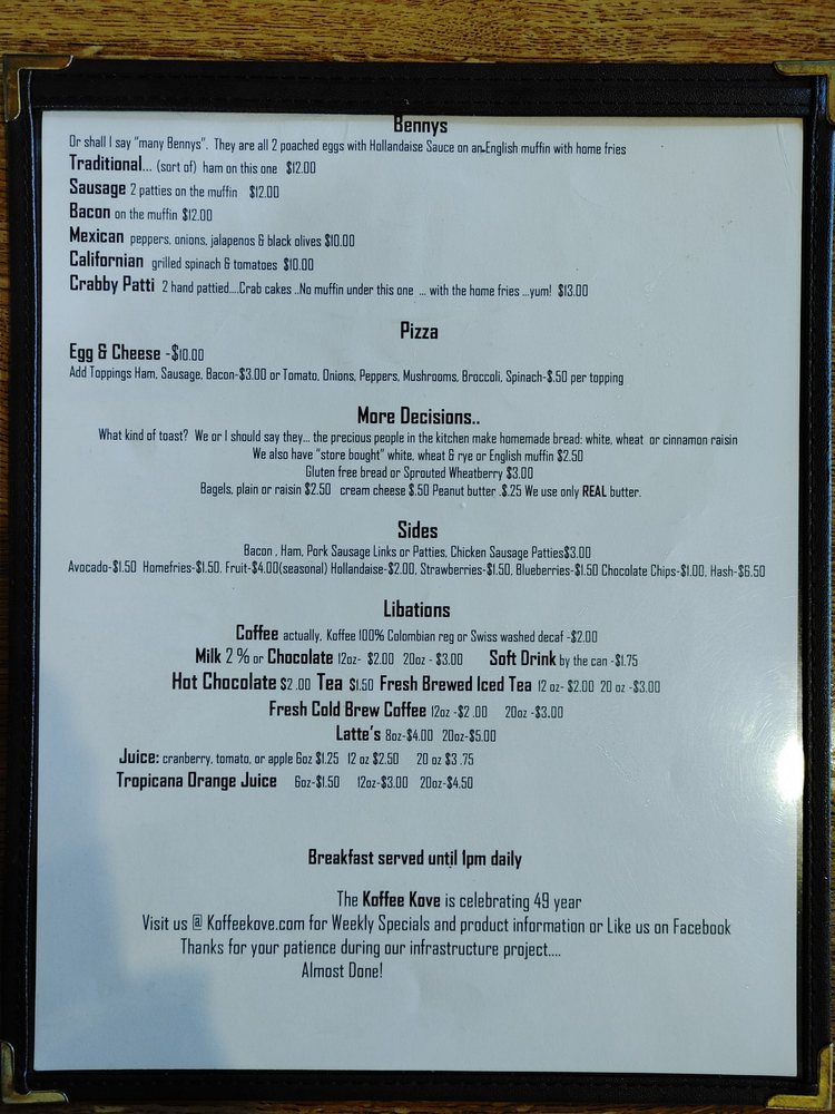 Welcome to Koffee Kove Restaurant, where comfort food meets a cozy atmosphere in Clayton, NY. This American culinary gem offers a delightful array of breakfast and brunch options that cater to all tastes, including hearty pancakes, stuffed French toast, and fresh salads. The highlight certainly lies in their exquisite coffee, praised by coffee enthusiasts like Paul B. for its bold flavors and satisfying strength.